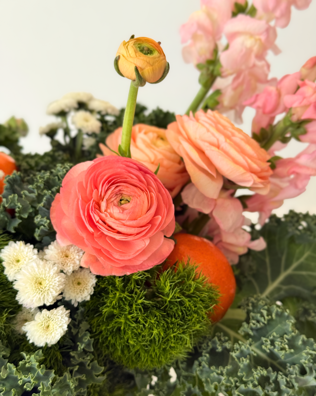 The citrus acts as a striking focal point while adding natural fragrance to your arrangement.